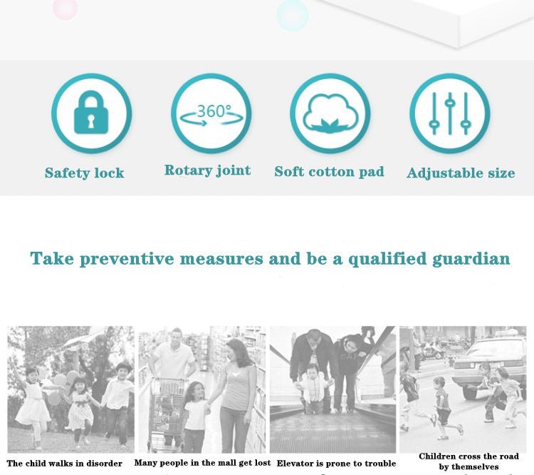 Designed with double Velcro protection, the wrist strap stays secure and resists accidental removal, making it a reliable safeguard for your little one. Whether at the supermarket, park, airport, shopping mall, or other crowded places, this anti-lost rope ensures your child stays close without restricting their curiosity.