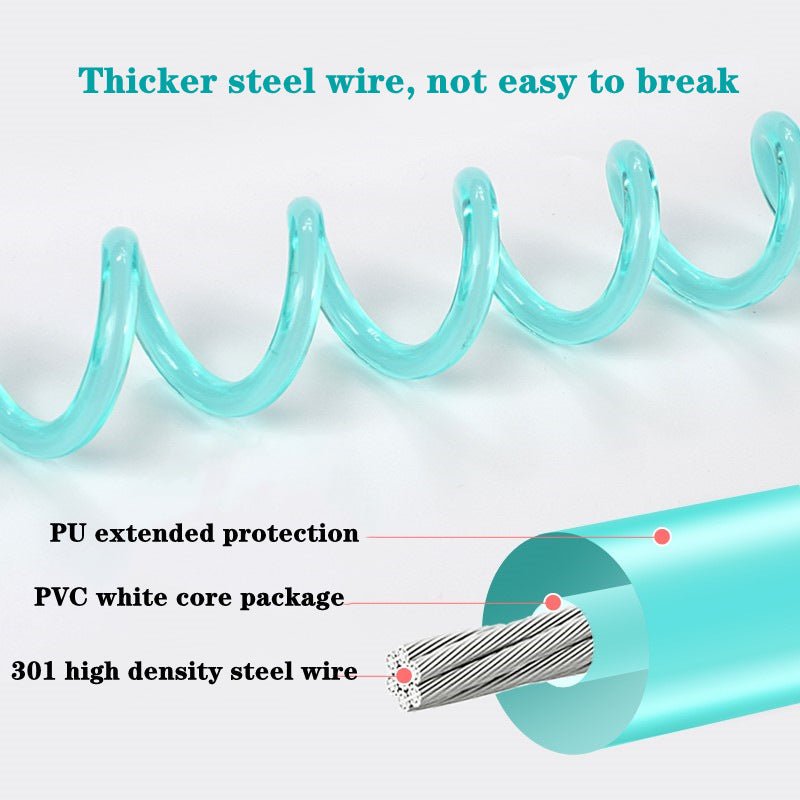 Durable & Safe: Strong retractable wire rope with soft plastic covering.