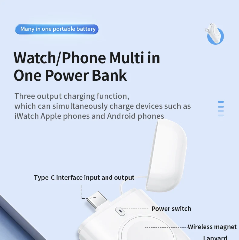 Keep your Apple devices powered wherever you go with the Mini Power Bank 2580mAh—a sleek, ultra-portable charging solution built for modern life. Whether you're on a road trip, at work, or on-the-go, this mini charger ensures your Apple Watch or iPhone stays charged without the bulk of traditional power banks.